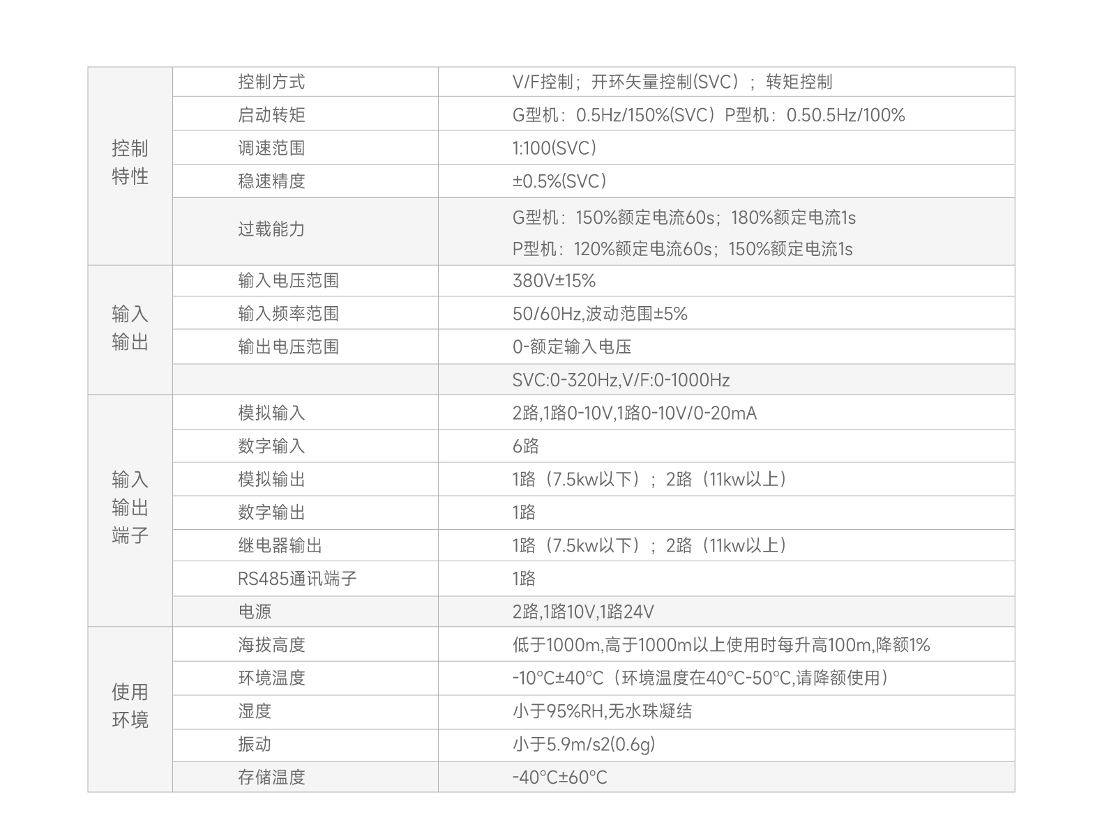 SVC控制:最大輸出頻率320Hz VF控制:最大輸出頻率1000Hz VF控制最大1000Hz頻率輸出。 過勵(lì)磁制動功能, 實(shí)現(xiàn)快速制動。0.75-22kW內(nèi)置制動單元